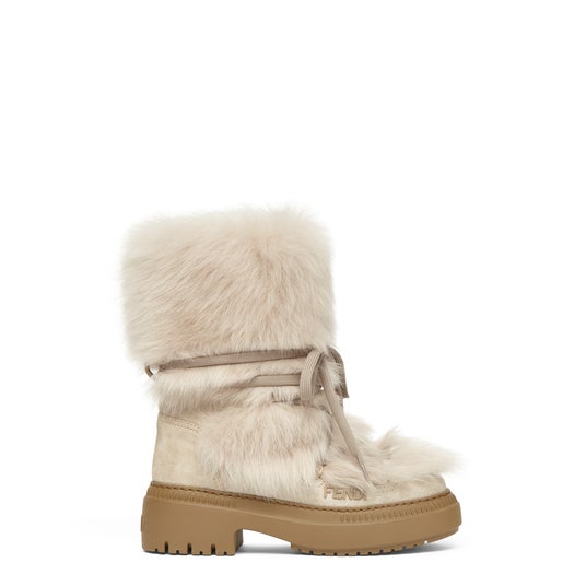 コレクションに柔らかな質感をプラスするスキーアクセサリーも豊富に展開しています。立体的な「FF」ロゴモチーフが特徴的なシープスキン製のミトンは、手のひら部分に同色のウールとカシミアニットファブリックのリブ編みを使用し、調節可能なロングストラップも付属しています。「FF」ロゴモチーフを織り込んだテクニカルファブリック製のスキーグローブはタッチパネル対応可能で、手首部分には、フェンディ 2024-25年秋冬 ウィメンズコレクションとリンクしたストライプモチーフが施されています。ウェアと合わせたヘルメットやバゲットハットも取り揃え、コーディネートの可能性を広げます。