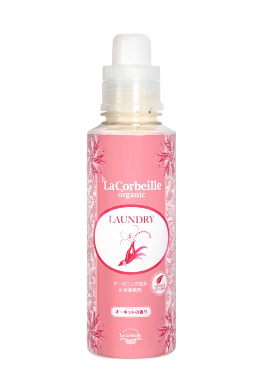 ラ コルベイユ オーガニックランドリー<オーキッドの香り>柔軟剤をスキンケア発想で作りました。柔軟剤の成分はお肌と触れるもの、だからこそ”お肌にやさしい成分”にこだわりました。