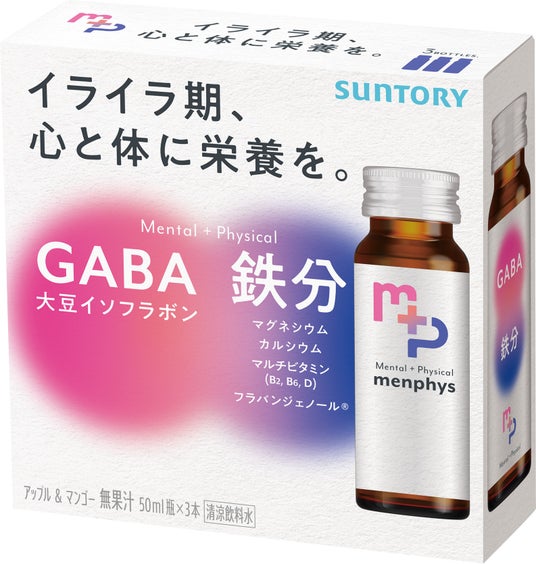 「menphys GABA&大豆イソフラボン&鉄分」3本パック女性特有のイライラ期を明るく前向きにサポートするセルフケアドリンク。