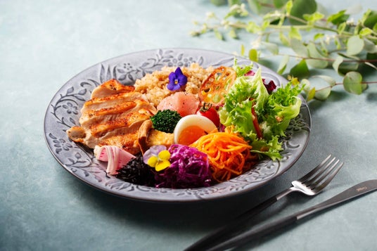 香ばしく焼き上げたチキンに、栄養がたっぷり詰まった色とりどりのサラダ「虹色野菜」と、胚芽部分が通常より3倍もある、GABAやビタミンE、食物繊維などの栄養素が豊富な高機能玄米「金のいぶき」を添えました。