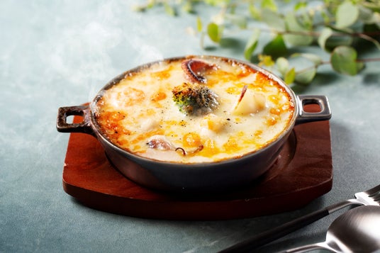 あさり、イカ、えび、貝柱といった豪華なシーフードを玉ねぎ、マッシュルームと一緒にベシャメルソースと合わせてこんがり焼き上げました。「堂島ロール」にも使用している自社牧場のクリームを隠し味に加えた食べ応え十分なグラタンです。