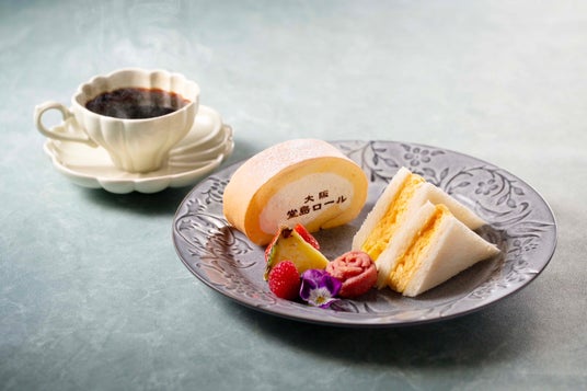 「堂島ロール」にも使用している自社牧場のクリームを隠し味に加えた厚焼き玉子サンドと「堂島ロール」のセット。