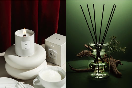 左:フレグランスウッドキャンドル MÜ(ムー) 右:フレグランスリードディフュザー YEDA(イェダ)
