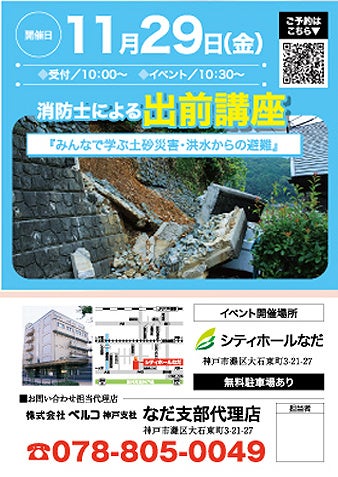 株式会社ベルコ(本社:大阪府池田市、代表取締役:齋藤 斎)では、シティホールなだにて、地域防災力の向上を目的として、消防士による出前講座「みんなで学ぶ土砂災害・洪水からの避難」を開催します。災害のリスクが高まる中、自分や家族の命を守るための正しい知識と行動を学べる貴重な機会です。