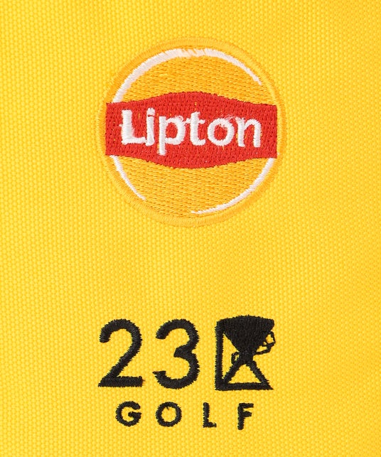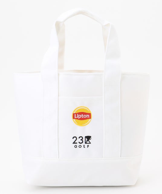 『23区GOLF』のロゴの中に、「リプトン」の象徴的なピラミッド(R)型ティーバッグのモチーフが隠れている遊び心あるデザインです。上部の開口部は普段使いにも便利なジッパー仕様です。