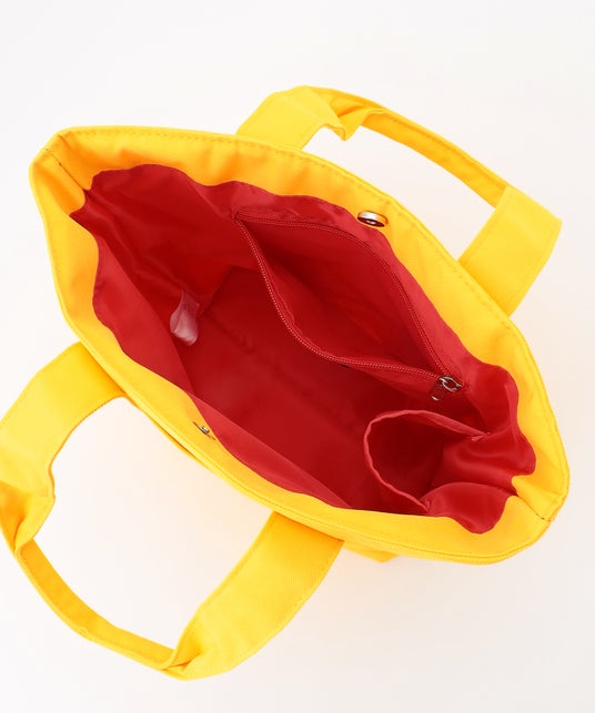表面はつるっとしたポリエステル素材で汚れが付きにくく、雨の日にも使いやすい素材を採用しています。バッグ内側はミルクティー柄のプリントが可愛く主張しています。ピラミッド(R)型ティーバッグを模したミニポーチが付属し、ポーチに何を入れて運ぶか考えるのも楽しい、遊び心あるギミックです。