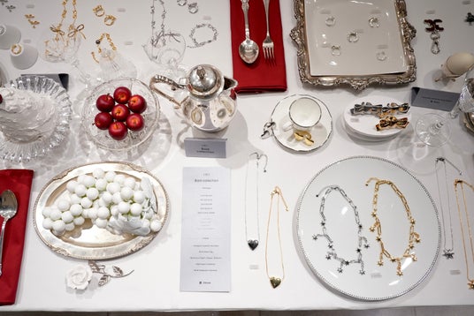 それぞれのテーブルコーディネートに、これまで発表した全コレクションが並びます。