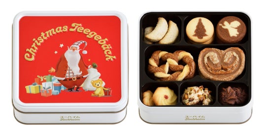 定番のビスケット「テーゲベック」がクリスマス仕様になりました。ツリー柄のビスケットやココア風味のパイなど、特別なお菓子をユーハイムサンタの缶に詰め合わせました。
