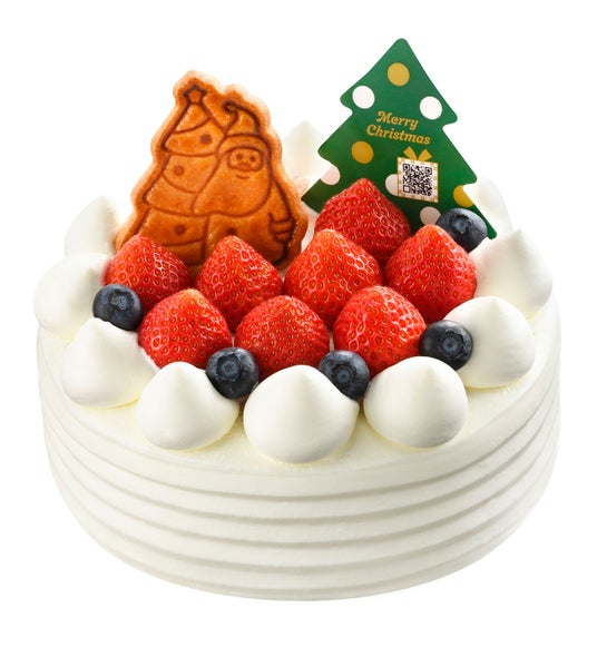 ふんわりスポンジと口どけのよいコクのある生クリームに、フレッシュな苺とブルーベリーをデコレーションしたクリスマスケーキ。