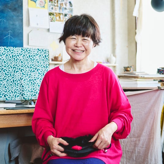 堀口尚子さんイラストレーター、アーティスト。墨、アクリル絵の具、ゴム判、切り絵などのさまざまな素材を用いて具象・抽象作品を制作。毛糸を使った作品から包装紙、カレンダー、ポストカード、テキスタイルなど「なんでもつくってみる」をモットーに活動中。