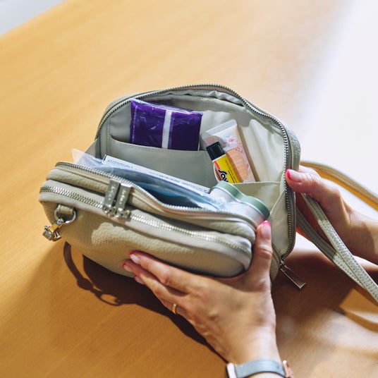 ラジオDJ・秀島史香さんとのコラボレーションから生まれたのは、「just enjoy ポーチ」。ストップウォッチや電子辞書といったDJのひきだしに入っている仕事道具がコンパクトに収まるように設計された、ショルダータイプのポーチです。ポーチの中は、パタンと開いて使えるスペースと、肩からかけたまま開いて使えるスペースに分かれているので、それぞれに必要なものを分類しながら入れることができます。素材は合皮で、色はどんな服にも合わせやすい、温かみのあるベージュです。肩ひもの長さは自由に調節可能で、取り外して使用できます。ポーチの外側には、秀島さんが大切にしている言葉「relax, just enjoy.」を刻印しました。