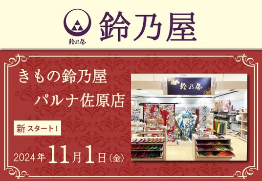 株式会社まるやま・京彩グループ(本社:神奈川県川崎市)の着物専門店「きのはなサロン佐原店」(千葉県香取市北)はこの度、「きもの鈴乃屋パルナ佐原店」(茨城県稲敷市西代1495ショッピングセンターパルナ2F)と統合し、2024年11月1日(金)より新たにスタート致しました。
