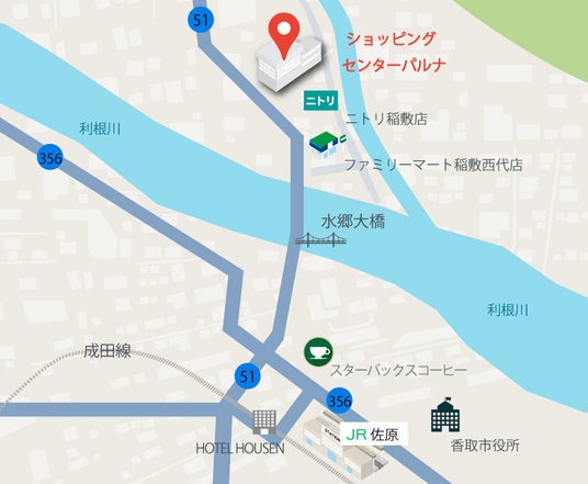 JR成田線佐原駅から香取市循環バス【北佐原・新島ルート】「ショッピングセンターパルナ」下車
