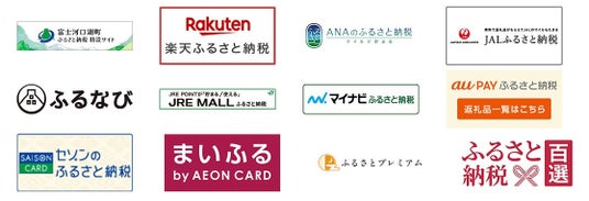 「富⼠河口湖町ふるさと納税特設サイト」「楽天ふるさと納税」「JALふるさと納税」「ANAのふるさと納税」「ふるさとプレミアム」「マイナビふるさと納税」「AUPAYふるさと納税」「セゾンのふるさと納税」「まいふる」「ふるさと納税百選」「JRE MALL」「ふるなび」の12サイトをご利用頂けます。