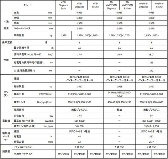 – eHybrid R-Line 1.5L eTSI PHEV (110kW/150PS) / 6速DSG / FWD