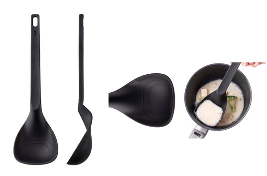 計量から炒めもの・汁物などの調理過程がこれ1本で対応できるスプーンです。サイドの平らな形状と先端のシリコーンでフライパンのフチや底に沿う設計となっており隅々まですくうことができます。