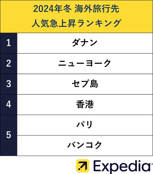 エクスペディアは、検索データから見た「2024年 冬の人気海外旅行先ランキング」と、12月から2月の期間で最もお得に冬旅ができる月を発表します。さらに、会員なら国内外の対象地域への旅行が30%以上オフとなる「ブラックフライデーセール」を実施します。