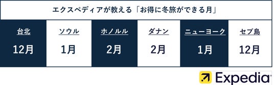 ■冬の海外旅行がお得に!エクスペディアが教える「12~2月の間でお得に冬旅ができる月」