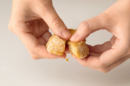 BUTTER STATEʼsのバタークッキーは、食べごたえのあるたっぷりとした厚みが魅力。両手で持って頂上を押すと、リッチな厚みのまま簡単に3つに割れて、食べやすい「ひとくちサイズ」ができあがります。溢れるバター感を快適に楽しめるよう考案された、BUTTER STATEʼsならではのおいしさ設計です。みんなで「ハッピー3ピース」!