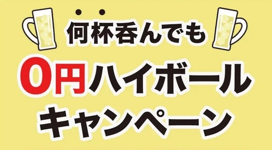 ・ 内容:対象時間内、ハイボールがなんと何杯でも0円でお楽しみいただけます!