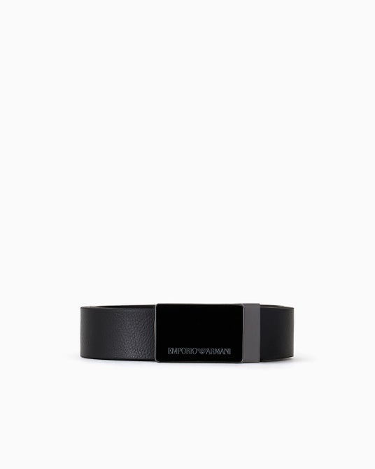 ロゴプレートをあしらったペブルドカウハイドのベルトは気品とエレガンスを体現したシンプルなフォルムでメンズワードローブに欠かせないアクセサリーです。