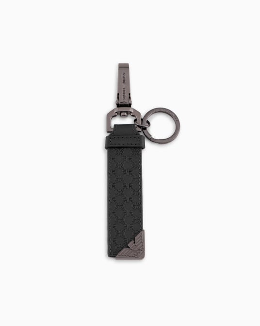 アタッチメントリングとスプリングフックの付いた、カウハイドのキーリング。モダンで洗練されたスタイルとヴィンテージのディテールが融合し、タイムレスなエレガンスが際立つレザー小物アイテムです。ボトムのコーナーにはアイコニックなイーグルのメタルディテールが施されています。