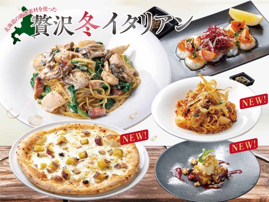 札幌を中心に東北・関東で「北海道小麦の生パスタ 麦と卵」「焼鳥ダイニング いただきコッコちゃん」など47店舗を経営する株式会社イーストン(所在地:札幌市北区、代表取締役社長:大山 泰正、以下「イーストン」)は、2024年12月3日(火)北海道サロマ湖産カキ、北海道常呂産ホタテを使用した期間限定パスタメニュー、カルパッチョ、そして熟成やきいも「SAZANKA」を贅沢に使用したピッツァとドルチェを販売いたします。
