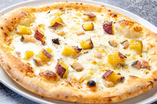 【メニュー名】北海道小林牧場ブルーチーズと「熟成やきいも」のクリームピッツァ