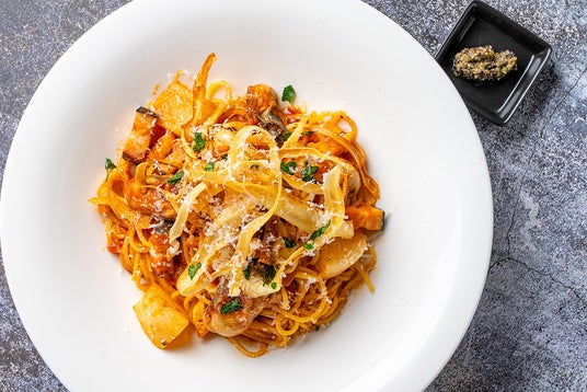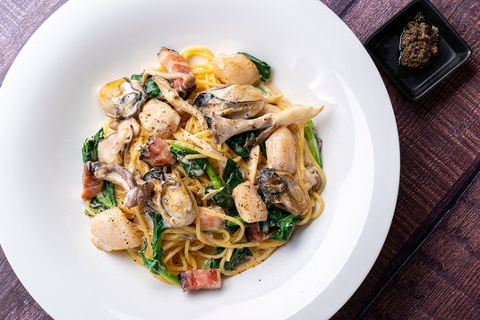 贅沢なほど濃厚でクリーミーな牡蠣と大粒のホタテがゴロゴロと入ったクリームソーススパゲティ。オリーブ、アンチョビ、ケッパー等の入ったタプナードソースで味変を楽しめます!