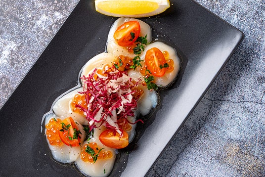 【メニュー名】北海道常呂産ホタテのカルパッチョ いくらを添えて