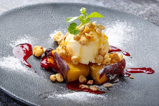 【メニュー名】熟成やきいも「SAZANKA」とバニラアイス 北海道産はちみつ添え