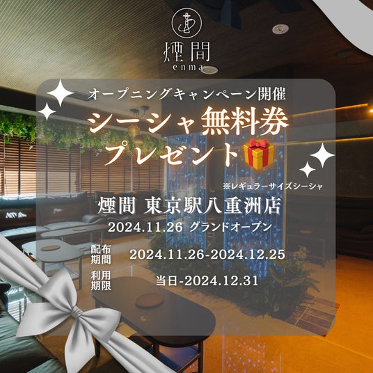 オープンを記念して、レギュラーシーシャ無料券プレゼントキャンペーンを実施中!