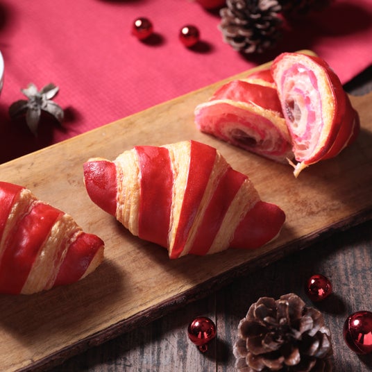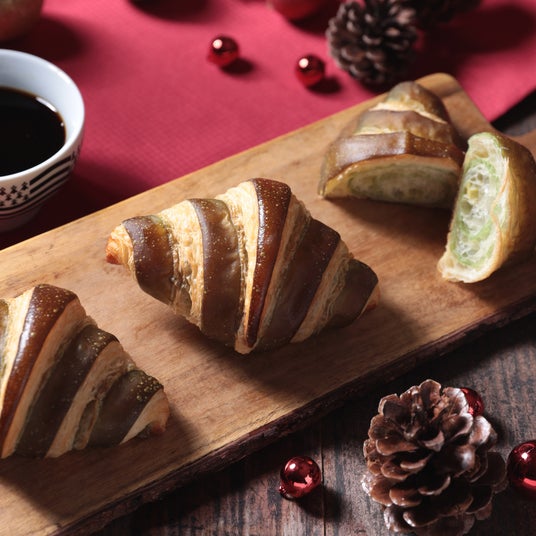 クロワッサンに香り豊かなピスタチオのフィリングを包んで彩りよく仕上げました。