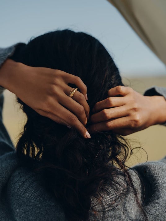 不規則でうねるような風の動きからインスピレーションを得たEole(エオル)コレクション。曲線に注目し、流れるようなフォルムやスパイラルなど、彫刻的な螺旋を表現しました。素材が持つ硬質な印象と、予測不可能な風の流動的な性質が対照をなしています。コレクションの名前の由来は、ギリシャ神話の風の神。その発音はこのラインが象徴する、自由なフォルムを思い起こさせます。