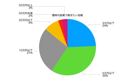 副業といっても、5万円以下が半数を超えており、毎月のお小遣いくらいを稼ぎたいという結果になりました。