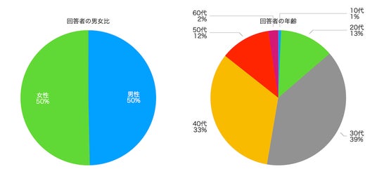 回答者の男女比はほぼ半々になり、年齢層は10代~60代と幅広く回答いただき、中でも副業や在宅ワークに関心がある30代・40代が特に多く回答いただきました。