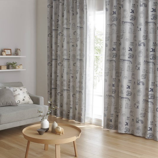 カーテンに描かれるマイキーやスケッチねこたちなどが日常にやさしさと楽しさを届けてくれます。