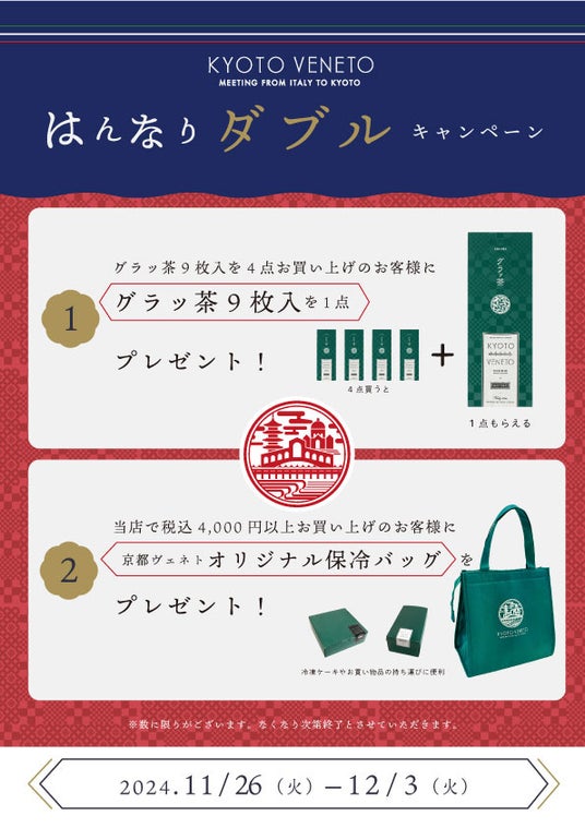 (2)税込4,000円以上お買い上げのお客様に京都ヴェネト オリジナル保冷バッグをプレゼント!