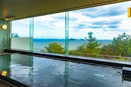 海抜60mの高台に建ち、ホテルからは西日本最高峰「石鎚山」をはじめとする石鎚連峰の美しい稜線や瀬戸内海に浮かぶ島々を一望できます。全室オーシャンビューのお部屋からはパノラマ写真のような景色が広がり、開放感あふれるレストランでは、瀬戸内海の旬の食材を使ったビュッフェをお楽しみいただけます。