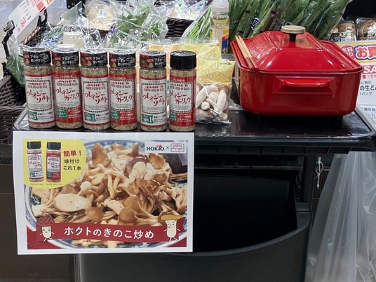 『クレイジーソルト』は肉や魚で使用する人が多く、きのことも相性が良いことを消費者へ訴求したいと考えていました。一方、ホクト側も新しい切り口のきのこレシピを消費者へ提案したいと考えており、両者の想いが合致、気温が下がり体調管理が難しくなるこの時期に栄養もうま味も豊富なきのことのコラボに至りました。2022年に実施したホクトとの関連陳列販売は、コロナ明けで試食販売ができないにも関わらず『クレイジーソルト』販売数が前年比約160%と高い結果に。今回のコラボレーションでは『クレイジーソルト』ときのこの組み合わせがもつ可能性に注目し、家庭の料理をより簡単に楽しめるアイデア提供を目指しています。