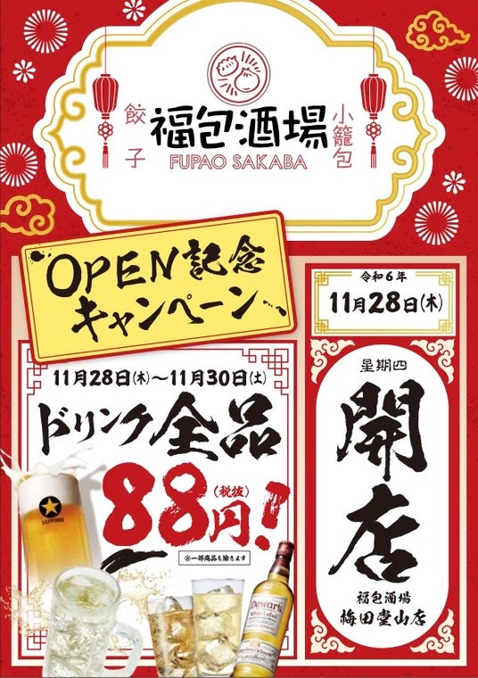 飲食店事業を展開する株式会社 Global Oceanは 「福包酒場 梅田堂山店」を11月28日(木)にグランドオープン致します。