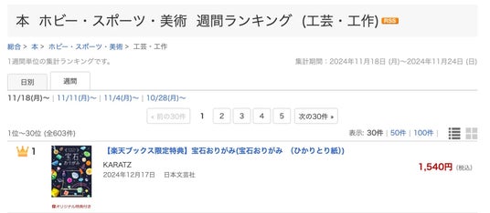 ★楽天ブックス週間ランキング(工芸・工作部門)で1位を獲得しました!(2024.11.18~11.24)