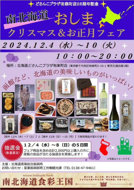 渡島総合振興局では、12月4日(水)~10日(火)まで、「南北海道 おしまクリスマス&お正月フェア」を開催します!