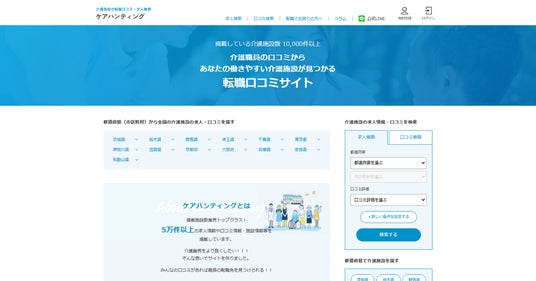 ケアハンティングでは介護職員のリアルな口コミを活かし、自分に合った介護施設を探せる転職支援サービスを提供しています。