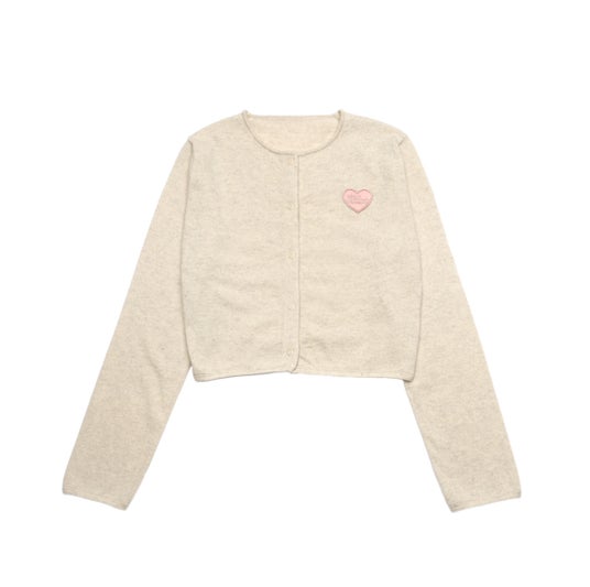 RACCOON BLENDED CROPPED CARDIGAN HEART LOGO / OATMEAL ¥20,900(税込)
