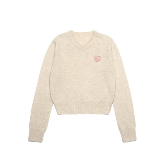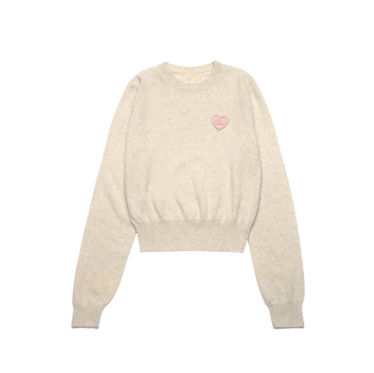 ラクーンをブレンドしたウールニットは、柔らかな肌触りと肌なじみの良いオートミールカラーが特徴で、24FWで初めて登場したHEART LOGOを組み合わせたフェミニンで洗練されたデザインに仕上がっています。