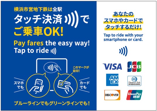 横浜市交通局は、令和6年12月4日(水)から、市営地下鉄の全40駅でタッチ決済対応のカード(クレジット、デビット、プリペイド)や、同カードが設定されたスマートフォン等による乗車サービスに関する実証実験を開始します。