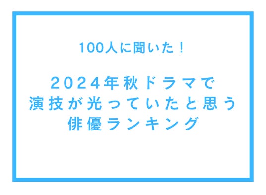 この記事では、「2024年秋 今期ドラマで演技が光っていたと思う俳優」について100人にアンケートを実施した結果を、選んだ理由とともにランキング形式で発表します。