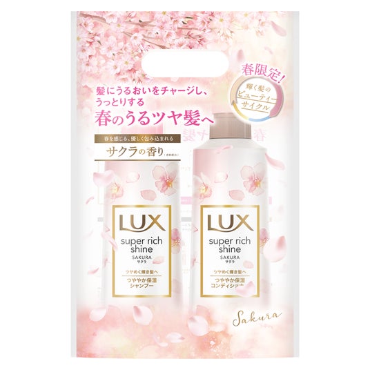 ラックス スーパーリッチシャインは、ダメージ・パサつき・うねり・ツヤのなさといった、髪の悩みのそれぞれに丁寧にアプローチすることができる、ラックスの中でも基幹となる商品です。「ラックス スーパーリッチシャイン サクラ」は、サクラの香りが毎年人気の商品となっています。