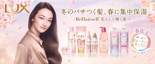また、今年「ラックス」は、季節ごとの髪悩みに合わせたヘアケア習慣「輝く髪のビューティーサイクル」を提唱し、女性たちがいつでも理想の自分でいられるように、夏に「ラックス リペア&さっぱり シリーズ」、秋には「ラックス キンモクセイシリーズ」など、季節の髪悩みに合わせた処方や香りのアイテムを展開しています。冬の乾燥やパサつきなど季節ならではの髪悩みをケアし、理想のツヤ髪に導いてくれる「サクラシリーズ」で「#春髪スイッチ」を体験してみてください。